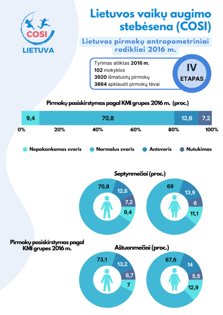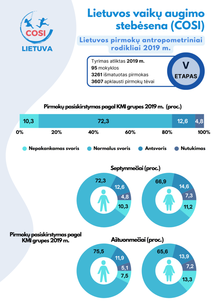 Aušra Petrauskienė, Monika Grincaitė, Vilma Kriaučionienė, Laura Miščikienė, Justina Vaitkevičiūtė Lietuvos pirmos klasės mokinių augimo ir gyvensenos stebėsena (COSI): 2008-2019 metų tyrimų rezultatai Kaunas, 2020.